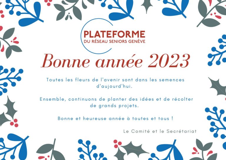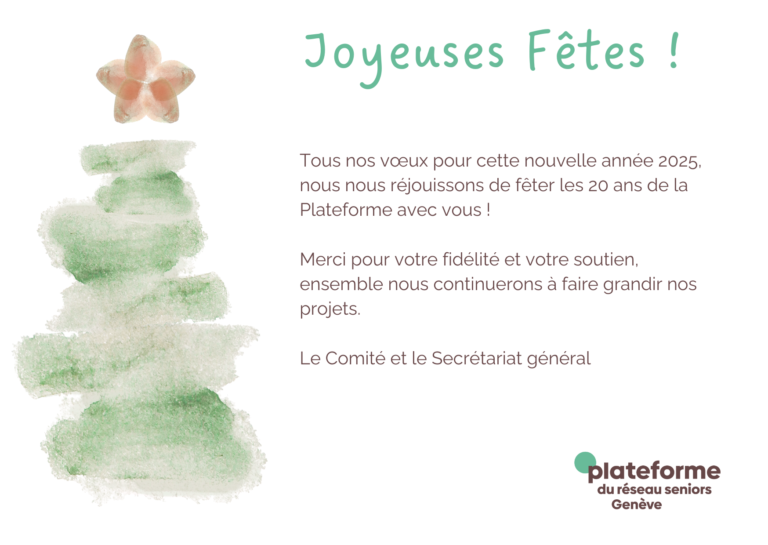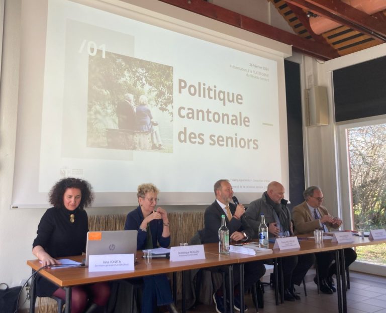 Actualités Actualités de la Plateforme Actualités du réseau Actualités de la Plateforme Actualités du réseau . La Plateforme recrute ! 3 décembre 2025 . Info’réseau décembre 2025 27 novembre 2025 . Présentations de la soirée 25 novembre 2025 . Accompagnement social individuel pour seniors 12 novembre 2025 . Info’réseau novembre 2025 11 novembre 2025 . Info’réseau octobre 2025 25 septembre 2025 . Recommandations aux communes 3 septembre 2025 . Info’réseau septembre 2025 1 septembre 2025 . Genève au service des seniors 11 juillet 2025 . Info’réseau été 2025 26 juin 2025 . Cérémonie des Séniors 28 mai 2025 . Info’réseau juin 2025 27 mai 2025 . Bienvenue au sein du comité Plateforme 14 mai 2025 . Info’réseau mai 2025 30 avril 2025 . Rapport « Âge et migration : réalités et défis genevois » 11 avril 2025 . Politique cantonale des seniors 4 avril 2025 . Info’réseau avril 2025 1 avril 2025 . Info’réseau mars 2025 3 mars 2025 . Info’réseau février 2025 29 janvier 2025 . Vœux 2025 16 janvier 2025 . Info’réseau janvier 2025 6 janvier 2025 . Info’réseau décembre 2024 29 novembre 2024 . Rapport « Accessibilité(s) seniors à Genève – Plus que la norme » 28 octobre 2024 . Info’réseau novembre 2024 28 octobre 2024 . Ville de Genève – Politique de la longue vie 28 septembre 2024 . Info’réseau octobre 2024 27 septembre 2024 . Conférence de presse : Accessibilité(s) seniors 9 septembre 2024 . Guides VIeSA 3 septembre 2024 . Rencontres de la longue vie – 3e édition 3 septembre 2024 . Info’réseau septembre 2024 2 septembre 2024 . Consultation interne 1 juillet 2024 . Info’réseau été 2024 27 juin 2024 . Le Panel des seniors 31 mai 2024 . Rapport « Tissons la Toile » 31 mai 2024 . Info’réseau juin 2024 30 mai 2024 . Info’réseau mai 2024 29 mars 2024 . Témoignage : Le passage à la retraite 29 mars 2024 . Info’réseau avril 2024 28 mars 2024 . Politique cantonale des seniors 29 février 2024 . Info’réseau mars 2024 29 février 2024 . A quel âge est-on vieux ? 29 février 2024 . Info’réseau février 2024 1 février 2024 . Vœux 2024 19 décembre 2023 . Info’réseau décembre 2023 5 décembre 2023 . Promotions Seniors 2023 3 novembre 2023 . Info’réseau novembre 2023 1 novembre 2023 . Café-croissants avec les député·e·s 2 octobre 2023 . Info’réseau octobre 2023 1 octobre 2023 . Info’réseau septembre 2023 31 août 2023 . Info’réseau juillet-août 2023 3 juillet 2023 . Communiqué : Conseil d’Etat 2023-2028 28 juin 2023 . Info’réseau juin 2023 5 juin 2023 . La PLATEFORME change de présidence 24 mai 2023 . Genève en parle 21 mai 2023 . Info’réseau mai 2023 2 mai 2023 . Info’réseau avril 2023 3 avril 2023 . Rencontres de la longue vie – 2e édition 1 mars 2023 . Info’réseau mars 2023 1 mars 2023 . Débat politique 13.02.2023 1 février 2023 . Info’réseau février 2023 30 janvier 2023 . Communiqué de presse 16 janvier 2023 . Info’réseau janvier 2023 10 janvier 2023 . Vœux 2023 19 décembre 2022 . Info’réseau décembre 2022 6 décembre 2022 . SAVE THE DATE 2e Rencontre Longue Vie 5 décembre 2022 . 2e newsletter VIeSA 1 décembre 2022 . Info’réseau novembre 2022 27 octobre 2022 . Communiqué de presse 30 septembre 2022 . Info’réseau octobre 2022 30 septembre 2022 . Équipe PLATEFORME – au revoir et bienvenue ! 1 septembre 2022 . Info’réseau septembre 2022 1 septembre 2022 . Il fait chaud, non ? 15 juillet 2022 . Info’réseau juillet-août 2022 30 juin 2022 . Rapport d’activité 2021 23 juin 2022 . Offre d’emploi PLATEFORME 22 juin 2022 . Retour sur la 1e édition des Rencontres de la longue vie 8 juin 2022 . Info’réseau juin 2022 1 juin 2022 . Lancement du projet « Tissons la toile » 23 mai 2022 . Info’réseau mai 2022 2 mai 2022 . Communiqué PLATEFORME 26 avril 2022 . Bien vieillir chez soi: attentes et besoins – article REISO 11 avril 2022 . Info’réseau avril 2022 4 avril 2022 . Genève Bénévolat- Solidarité Ukraine 14 mars 2022 . Info’réseau mars 2022 1 mars 2022 . 17 mars 2022 Rencontres de la longue vie 25 février 2022 . Info’réseau février 2022 1 février 2022 . La PLATEFORME est partenaire du projet « Vieillissement en Santé » 10 décembre 2021 . Édito 12.2021 : La solidarité, encore et toujours 29 novembre 2021 . Édito 11.2021 : Aider les proches aidant.e.s 29 octobre 2021 . Brochure « Habitat(s) seniors » : revue de presse 25 octobre 2021 . 1er octobre 2021 : Les seniors à l’honneur ! 30 septembre 2021 . Habitat(s) seniors : nouvelle brochure PLATEFORME 13 septembre 2021 . Vieillissement en santé : la PLATEFORME participe à un nouveau projet interinstitutionnel 1 septembre 2021 . Bonne rentrée 2021 31 août 2021 . 3e Rentrée des associations MIA 2021 29 août 2021 . Édito estival 2021 30 juin 2021 . Fondation Leenaards : fonds de soutien spécial COVID-19 27 juin 2021 . Édito juin 2021 1 juin 2021 . La PLATEFORME recrute! 31 mai 2021 . ECOUTER Jacqueline Cramer et Jorge Viladoms se rencontrent pour la première fois 14 septembre 2020